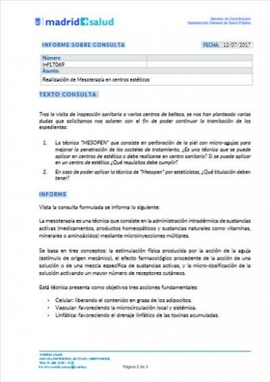 Suerte que te has molestado en leer el mi último post que redirige a una consulta del servicio de inspección sanitaria del Gobierno de Madrid. Un saludo.