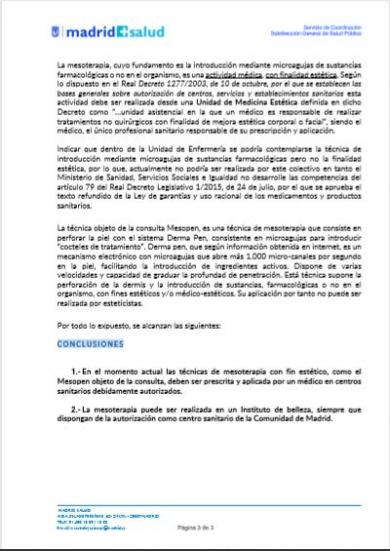 Hola Maisua La verdad que hay un vacio legal con estos temas (dermapen, mesoterapia. ..)