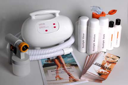 Corpora Body Care Solutions presenta Sun Light, único equipo profesional compacto bronceado DHA con tecnología HVLP (High Volume, Low Pressure). Turbina que genera a partir de aire caliente, en vez del aire frío del compresor, una micropulverización más fina y de más fácil absorción, y pistola de pulverización panorámica.