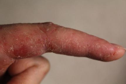Doy fe (como los notarios, jaja) que la dishidrosis es tal y como la ha mostrado la compañera, yo la sufro, y cuando tengo brotes fuertes se me pone asi o incluso peor.