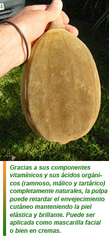 Gracias a sus componentes vitamínicos y sus ácidos orgánicos (ramnoso, málico y tartárico) completamente naturales, la pulpa puede retardar el envejecimiento cutáneo manteniendo la piel elástica y brillante. Puede ser aplicada como mascarilla facial o bien en cremas.