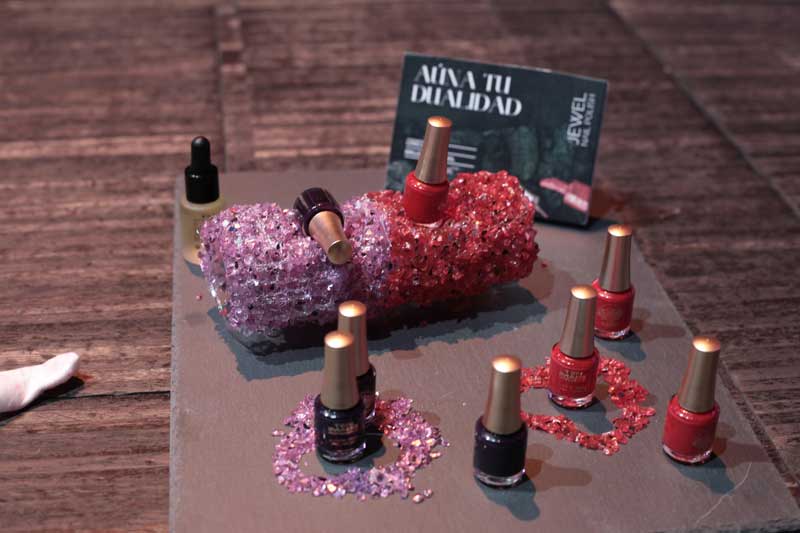 En labios, los acabados mates de otras colecciones dejan paso a labiales luminosos, en forma de gloss de última generación: colores intensos, efecto brillante y larga duración testada de seis horas. Se dieron a conocer dos nuevos tonos Mirror Lipgloss: unicorn, un rosa suave, y Red Roulette, un rojo intenso. La armonía entre labios y uñas se consolida con dos nuevos tonos de lacas de uñas Jewel, con efecto gel, muy propios del periodo invernal: Amsterdam, un malva potente, y Luxure Red, un rojo muy fácil de combinar.