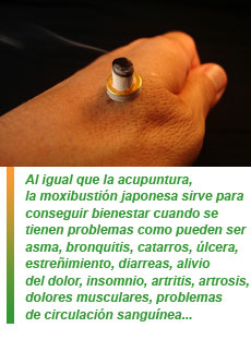 Al igual que la acupuntura, la moxibustión japonesa sirve para conseguir bienestar cuando se tienen problemas como pueden ser asma, bronquitis, catarros, úlcera, estreñimiento, diarreas, alivio del dolor, insomnio, artritis, artrosis, dolores musculares, problemas de circulación sanguínea...