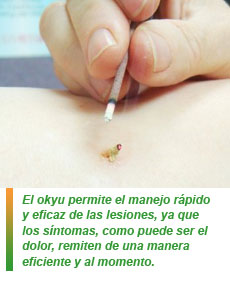 El okyu permite el manejo rápido y eficaz de las lesiones, ya que los síntomas, como puede ser el dolor, remiten de una manera eficiente y al momento.