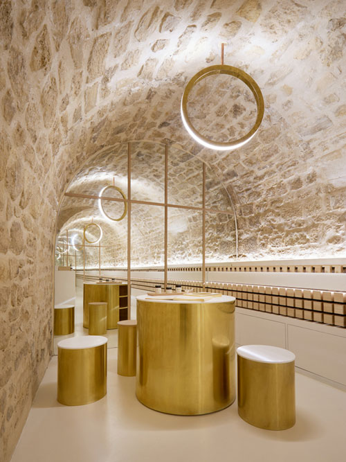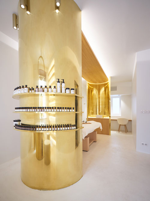 La tienda ocupa dos plantas y cuenta con una sala de tratamiento (tipo spa) y otra de maquillaje. Su decoración es espectacular: piedra y latón, objetos circulares, luminosidad para crear un ambiente cálido y armónico... un espacio diferente que la posicionan como una de las boutiques más famosas, actualmente, de la ciudad.