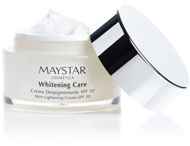 Una de las principales causas de la aparición de manchas oscuras en la piel es la excesiva exposición a los rayos del sol. Cuando llega el otoño y empezamos a perder el tono dorado, descubrimos que tenemos zonas hiperpigmentadas. Maystar Cosmética propone este tratamiento continuado y específico con un tándem de productos de la linea Whitening Care, concebidos para mantener a raya las manchas faciales.