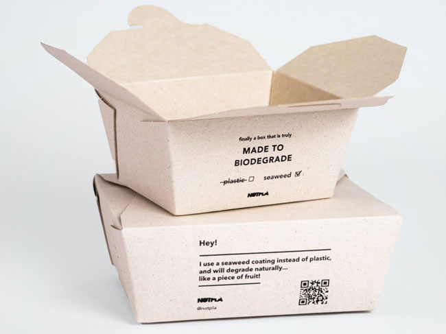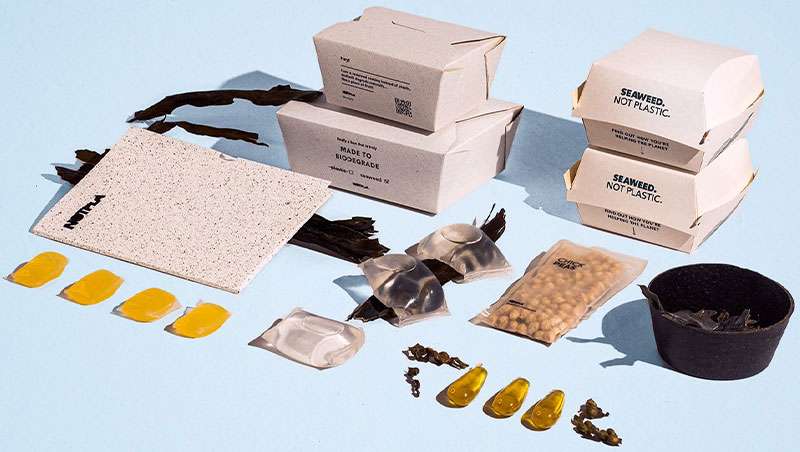 Notpla tiene como lema: "hacemos desaparecer el envase". Así, en lugar de usar plásticos dañinos para el medio ambiente fabrica envases naturalmente biodegradables e incluso comestibles, de algas marinas y otras plantas también marinas.