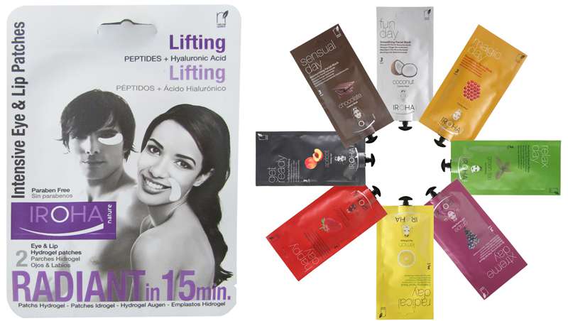Las mascarillas faciales en tisú de Iroha Nature consiguen resultados profesionales gracias a su composición de ácido hialurónico e ingredientes activos naturales de aloe vera, caviar, extracto de perla, aceite de oliva, Q10 o hamamelis.