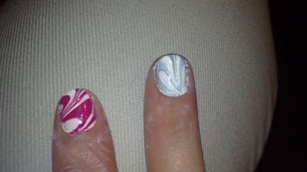 las hice por probar y no limpie muy bien la cuticula...ni el dedo!!! jaja pero asi quedo