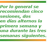 La Dra. Rey será quien determine en qué número, orden y frecuencia deben llevarse a cabo las sesiones precisas.Por lo general se recomiendan cinco sesiones, dos en días alternos la primera semana y una durante las tres semanas siguientes.