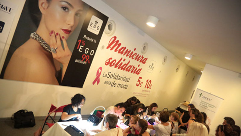 La manicura solidaria a cargo de Ego Professional, celebrada en el Palacio Baluarte con ocasión de la Navarra Fashion Week el dia 3 de octubre, fue un éxito absoluto. Se recaudaron 1.543 euros íntegramente donados a la Asociación Española contra el Cáncer.