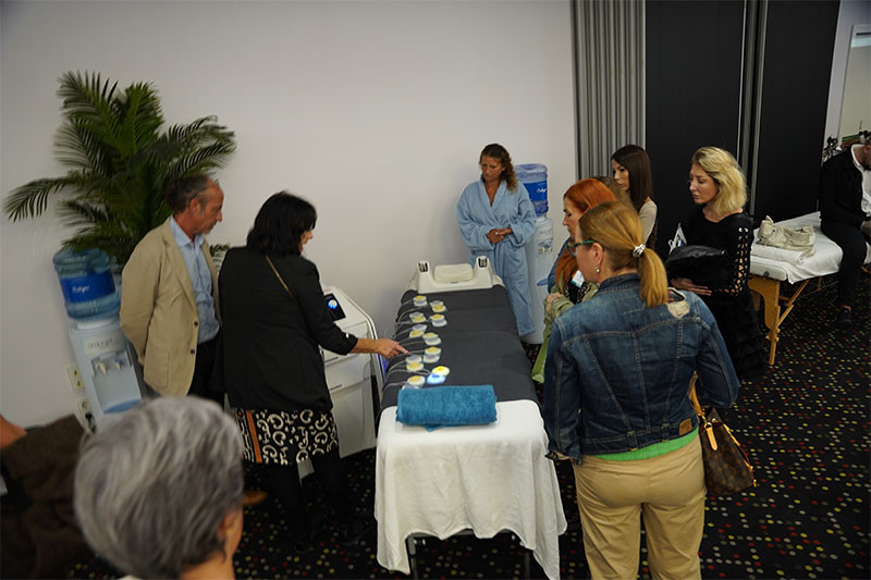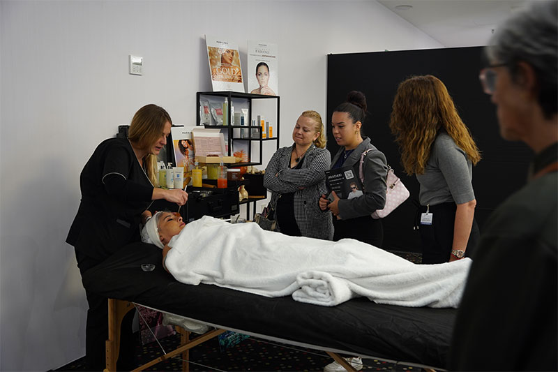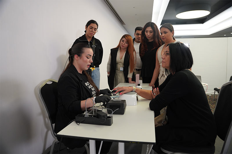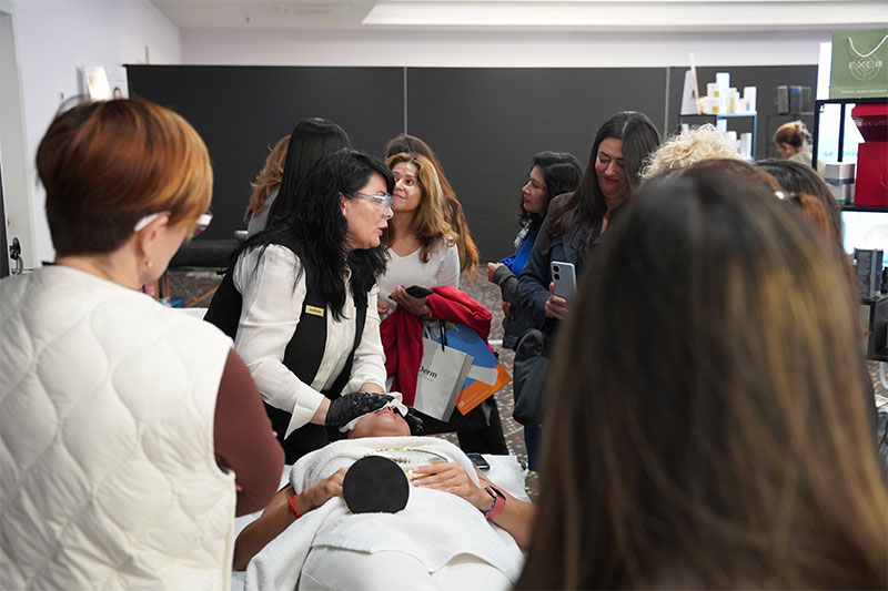 Por otra parte, Consuelo Silveira, una figura referente en el tour BC, atraía el interés del público con su sorprendente técnica de masaje Mio Activo Lifting Contour para el rejuvenecimiento facial y sus experimentados consejos para mejorar el rendimiento de un salón de belleza.