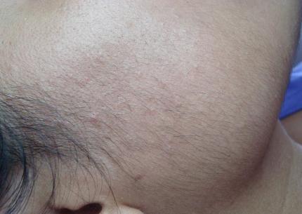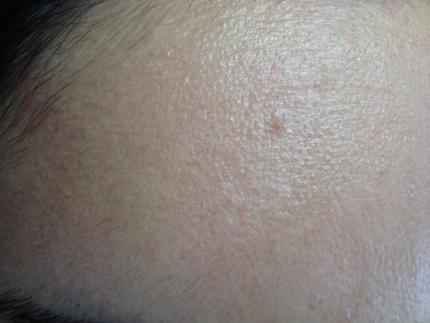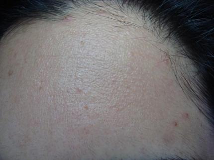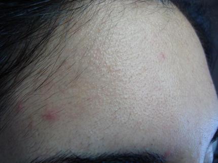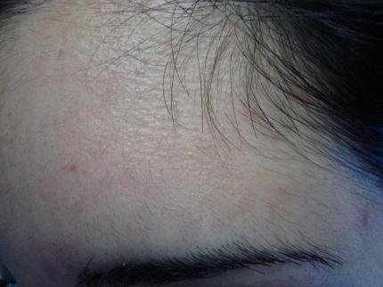 Este es el caso del vídeo. La imagen arriba muestra el "antes". Se trata de la frente de una mujer de 25 años, con una estimulación de vellos producida por un tratamiento anticaída. La sesión duró una hora. Se utilizó Thermolisis en su variante de Flash. Se usó una aguja aislada IBP (sonda bulbosa aislada)para evitar cualquier tipo de sobretratamiento.