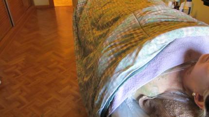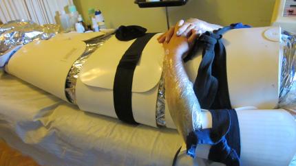 La banda de las piernas estan al minimo de calor con una toalla que protege,es por que el cuerpo mantenga el calor .hoy a venido a masage y la he vuelto a pesar y ha perdido otro poco,esta foto es para quien me dice que lo que pierden lo recuperan enseguida,