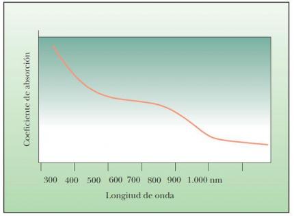 estetic-a, desde el punto biofísico, conforme aumentamos la longitud de onda, aumenta la capacidad de penetración del frente lumínico en la piel; pero a su vez, disminuye la capacidad de absorción de la melanina (cromóforo) de modo que el tratamiento se hace menos selectivo. De ahí que a la hora de parametrizar, además del fototipo, la fluencia la dinámica de pulso y el ciclo de crecimiento, haya que encontrar un equilibrio entre ambos factores (profundidad vs selectividad) mediante los filtros de corte, en función de la profundidad del folículo en cada región.