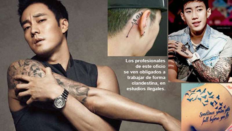 La moda de hacerse tatuajes crece en Corea del Sur, a pesar de que allí se considera una actividad ilegal. En ese país, aproximadamente 20.000 tatuadores trabajan en la clandestinidad, ya que legalmente se les considera desempleados. A pesar de la mayor demanda de este servicio, la Asamblea Nacional no considera una prioridad el hecho de legalizar la actividad del tatuador. Es más, las leyes surcoreanas, aprobadas por el ejecutivo de Park Geun-hye, primera presidenta de Corea del Sur, consideran los tatuajes un procedimiento médico que solo pueden efectuar doctores titulados en clínicas y hospitales. Por lo tanto, los profesionales de este oficio se ven obligados a trabajar de forma clandestina, en estudios ilegales.