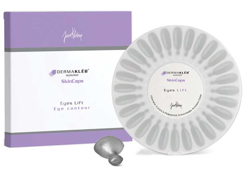 Con acción anti edad, hidratante y reafirmante, a base de microesferas de ácido hialurónico y biopéptidos de Levadura, que aumentan el colágeno y la elastina. - Skincaps Eyeslift.