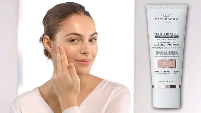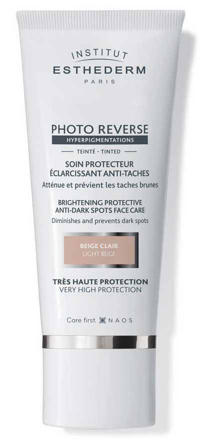 Photo Reverse Tinted de Institut Esthederm, está recomendada para piel hiperpigmentada con protección de rayos UV y fotoaging, a la vez que le proporciona un tinte natural.