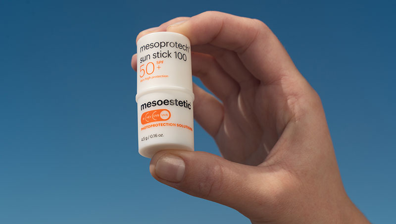 » mesoprotech® sun stick 100 ofrece una protección solar SPF 50+ (UVB 122 / UVA 90). Su fórmula incorpora rosa mosqueta, activo reconocido por sus propiedades regeneradoras. Su formato stick, práctico y fácil de reaplicar en cualquier momento, se desliza con facilidad sin dejar residuo graso, convirtiéndolo en el aliado perfecto para el esquí y las actividades al aire libre.
