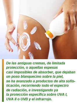 El liderazgo de España en materia de protección solar se consolida a nivel mundial, por el alto conocimiento que sobre el sol tiene nuestra sociedad. Empresas líderes trabajan junto a científicos destacados, dermatólogos, farmacéuticos, físicos y biólogos en búsqueda de productos de mayor protección, más sofisticados, y más "amables" a la utilización. De las antiguas cremas, de limitada protección, o aquellas espesas casi imposibles de absorber, que dejaban un poso blanquecino sobre la piel, se ha avanzado a productos de alta sofisticación, recorriendo todo el espectro de radiación e investigando ya la protección específica sobre UVA I, UVA II o UVB y el infrarrojo.