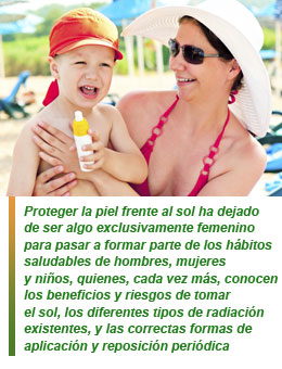 Los nuevos productos solares son cada vez más complejos. La amplitud de gamas y productos permite que siempre exista una opción para cada consumidor. Proteger la piel frente al sol ha dejado de ser algo exclusivamente femenino para pasar a formar parte de los hábitos saludables de hombres, mujeres y niños, quienes, cada vez más, conocen los beneficios y riesgos de tomar el sol,