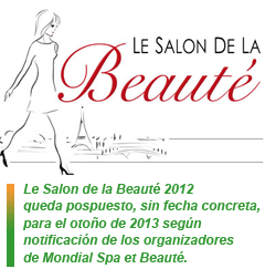 Le Salon de la Beauté 2012, organizado por la revista Cabines y que debía de organizarse del 19 al 21 de octubre de este año, no se llevará a cabo en esta segunda edición. Quedará pospuesto, sin fecha concreta, para el otoño de 2013 según notificación de los organizadores de Mondial Spa et Beauté.