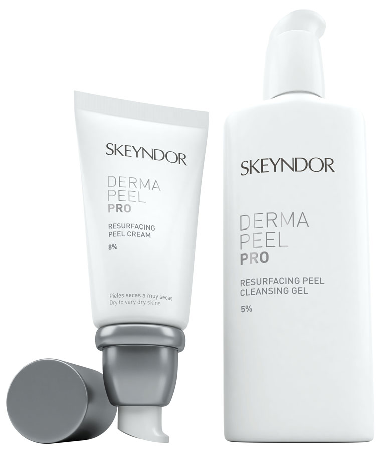 El método exclusivo de Skeyndor, con productos de tratamiento en domicilio, usa 5 técnicas de peeling para lograr una piel nueva y combatir las arrugas y las manchas