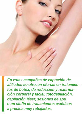 Así, nos encontramos con ofertas en tratamientos de bótox, de reducción y reafirmación corporal y facial, fotodepilación, depilación láser, sesiones de spa o un sinfín de tratamientos estéticos a precios muy rebajados.