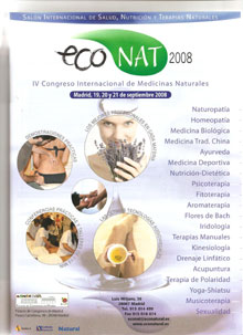 Los próximos días 19, 20 y 21 de septiembre se celebra en Madrid el IV Congreso Internacional de Medicinas Naturales, EcoNat 2008. Este importantísimo evento para el creciente sector de las Terapias Naturales tendrá lugar en el Palacio de Congresos de Madrid (Paseo de la Castellana, 99).