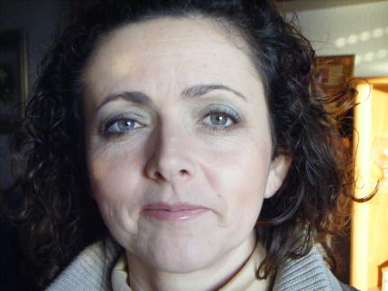 Granaina, me gusta! Esta muy bien. Veo que le has hecho el contorno para marcar pómulos, pero yo le habría puesto un poquito de colorete rosado en las manzanas (en el sitio que queda más gordito y levantado cuando sonreimos). Eso da un aspecto más fresco y juvenil, con efecto de buena cara. Y luego difuminar los dos, para que no se vea el corte entre uno y otro.