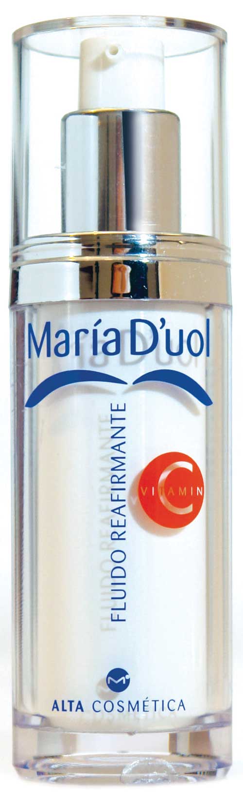 El fluido reafirmante vitamina C de María D'uol constituye un suplemento en sérum, especialmente indicado para combatir el síndrome Piel de Otoño. Este producto está formulado con Magnesium Ascorbyl Phosphate, derivado estable que se convierte en vitamina C en contacto con la piel, por vía enzimática. Se presenta en un envase air-less, que mantiene el producto libre de oxidación.
