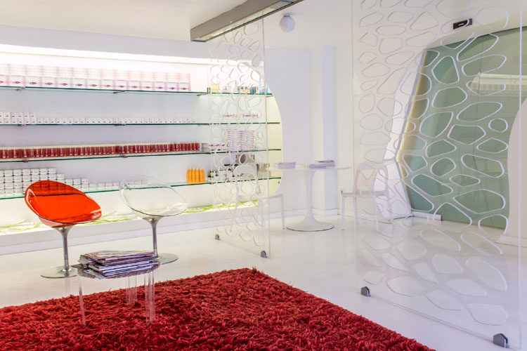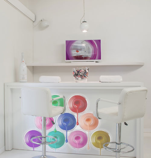 M.R.: Son dos espacios pensados para la comodidad del cliente donde se les ofrecen manicuras y pedicuras, así como la posibilidad de tomar algo, si así lo desean. Desde el punto de vista técnico se trabaja con las mejores firmas en color. Y el material se conserva esterilizado en bolsas para lograr la máxima higiene posible.