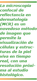 Un estudio por el cual se utilizó la tecnología más puntera: microscopía confocal de reflectancia en dermatología (MCR). Un novedoso método de imagen que permite la visualización de células y estructuras de la piel viva en tiempo real, con una resolución próxima al estudio histológico. La MCR permite detectar los cambios dinámicos en la piel con el paso del tiempo y en respuesta a diferentes estímulos, como la exposición a la radiación ultravioleta o a tratamientos específicos. La naturaleza no invasiva de esta técnica permite repetir las muestras sin realizar una biopsia, evitando así causar más daño a las zonas que están siendo estudiadas.