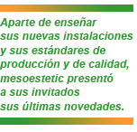 Aparte de enseñar sus nuevas instalaciones y sus estándares de producción y de calidad, mesoestetic presentó a sus invitados sus últimas novedades. Entre ellas se encuentra su nueva gama de tratamientos profesionales antiaging para tratar los distintos grados del envejecimiento cutáneo de manera diferenciada.