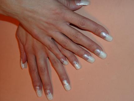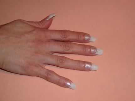 Se hacen las uñas acrílicas y por ultimo se aplica gel como brillo y se meten en la lámpara, antes del brillo puedes hacer algún diseño,como naturaleza muerta, o aplicar strass, etc.., de este modo te queda encapsulado