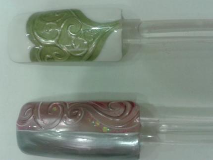 Voy a intentar poner las fotos de un esmalte permanente que a mi me parece super original. Con el se puede hacer el nail art en 3d, esta en todos loa colores y queda metalizado.