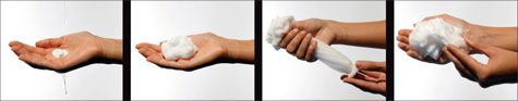 4. Poner la espuma en la palma de la mano y aplicarla en el rostro y cuello, evitando el contorno de los ojos. Masajear suavemente durante un minuto, insistiendo en la nariz y la frente. Aclarar con agua.