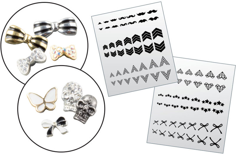 Además, son facilísimos de utilizar: solo hay que poner el adorno elegido sobre la capa aún húmeda del gel de sellado y endurecer esta capa.