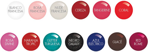 En esta edición limitada de lanzamiento se han seleccionado los colores más populares: los tres básicos Blanco francesa, Rosa francesa y Nude francesa; así como otros diez colores estrella, Cereza, Tangerine, Coral, Rosa Divine, Naranja Tropic, Glitter Turquesa, Negro Galaxy, Azul Eléctrico, Glacé y Red Rome.
