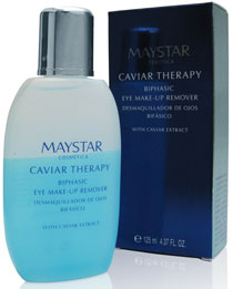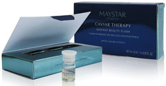 Maystar presenta dos nuevos productos que amplían su línea Caviar Therapy de uso facial. Se trata de Instant Beauty Flash, un concentrado de efecto lifting inmediato y Biphasic Eye Make-up Remover, un desmaquillador de ojos bifásico.