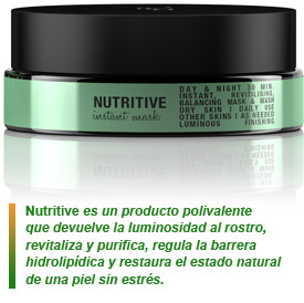 Elaborado con activos eficientes y seguros y libre de sustancias innecesarias contraproducentes, Nutritive es el producto salvavidas de la época otoñal, ya que gracias a sus funciones devuelve a la piel su salud y belleza revirtiendo los daños derivados de los calurosos días de verano. Un producto polivalente que devuelve la luminosidad al rostro, revitaliza y purifica, regula la barrera hidrolipídica y restaura el estado natural de una piel sin estrés.