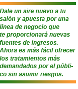 Infórmate cuanto antes y no esperes más. Dale un aire nuevo a tu salón y apuesta por una línea de negocio que te proporcionará nuevas fuentes de ingresos.