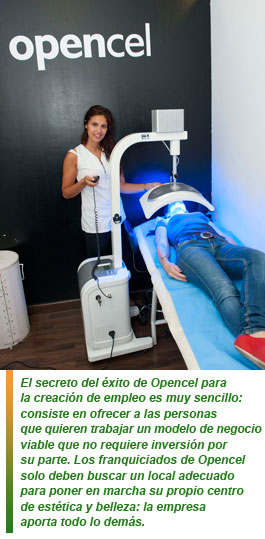 El secreto del éxito de Opencel para la creación de empleo consiste en ofrecer a las personas que quieren trabajar un modelo de negocio viable que no requiere inversión por su parte. Los franquiciados de Opencel solo deben buscar un local adecuado para poner en marcha su propio centro de estética y belleza: la empresa aporta todo lo demás, desde la maquinaria y los productos cosméticos a la formación y el asesoramiento para lanzar el negocio. Se trata de la primera cadena del sector que permite la posibilidad de crear un centro de estética entero con una inversión inicial de cero euros.