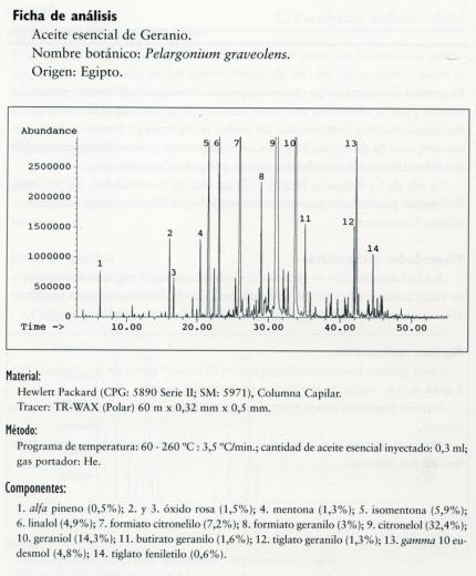 Queridas amigas, a continuación adjunto una ficha técnica standard de un aceite esencial puro (incluyendo composición y analisis cromatográfico).