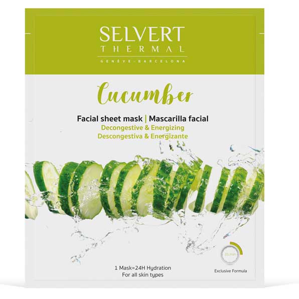 - Cucumber, descongestiva y energizante. La riqueza en vitaminas A, C y E del pepino consigue que esta mascarilla sea perfecta para lograr una piel fresca y joven, sin rastro de cansancio.