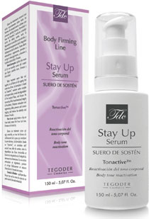 Tegoder Cosmetics da un nuevo paso adelante en la reafirmación corporal con Stay Up Serum. Este innovador suero de sostén, de fácil y rápida absorción, permite su uso diario en todas aquellas áreas del cuerpo que han perdido la sujeción natural, y actúa conjuntamente sobre todos los factores del envejecimiento cutáneo que provocan la pérdida de tono.