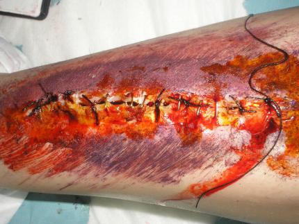 Lorena, el hilo es cosido, como si fueran puntos en una herida real, jejeje. Sólo que en vez de en la piel real, está en la carne artificial. En el enlace que he puesto antes, tengo una foto del principio, que está sólo la carne artificial sobre la piel. Bs!