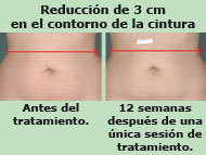 Los estudios clínicos han demostrado que entre las 8 y las 12 semanas después del tratamiento, en la mayoría de pacientes la reducción de volumen en cintura es de entre 3 y 8 cm en una única sesión.