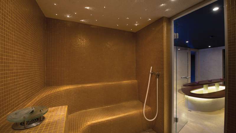 El spa tiene muchos elementos que lo hacen atractivo y moderno, como sauna Profi con frontal de cristal modelo Pure de Prim Spa Klafs, de una altísima calidad y líneas rectas refinadas que se integran con el diseño del spa, además, el spa ofrece una sauna de infrarrojos exclusiva de Prim Spa Klafs, para los amantes de la sauna pero con un calor más suave y sutil, un baño de vapor con cielo estrellado de la misma firma.