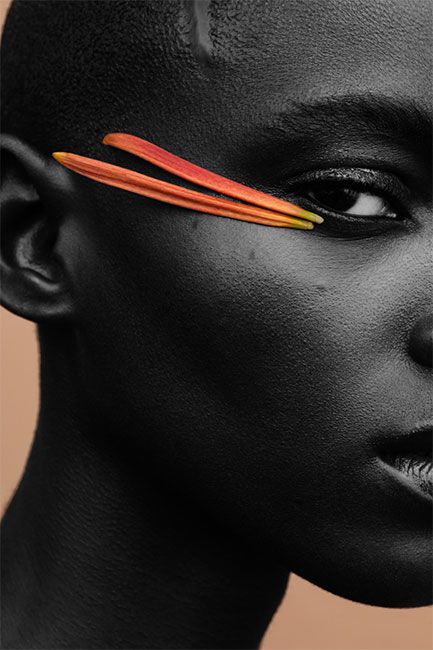 Además, entre ellos destaca Christine Lutz, ganadora de la categoría Beauty, que presentó una obra inspirada en el contraste, la textura y el minimalismo. En su imagen, Lutz utiliza el blanco y negro como elemento dominante, destacando el vibrante color naranja de los pétalos que reposan sobre la piel humana. Este juego visual crea una tensión que, según la artista, simboliza la conexión entre la naturaleza y la identidad humana. La textura de la piel, con sus imperfecciones y acabado mate, contrasta con la suavidad de los pétalos, transmitiendo un delicado equilibrio entre fragilidad y resistencia, donde lo suave se encuentra con lo fuerte.